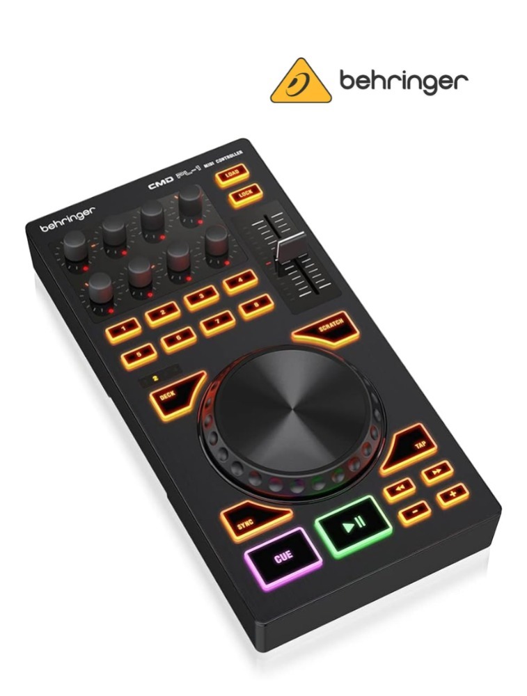 O Behringer CMD PL-1 é um controlador portátil para DJs, projetado para oferecer controle intuitivo e completo sobre softwares de mixagem e performance digital.